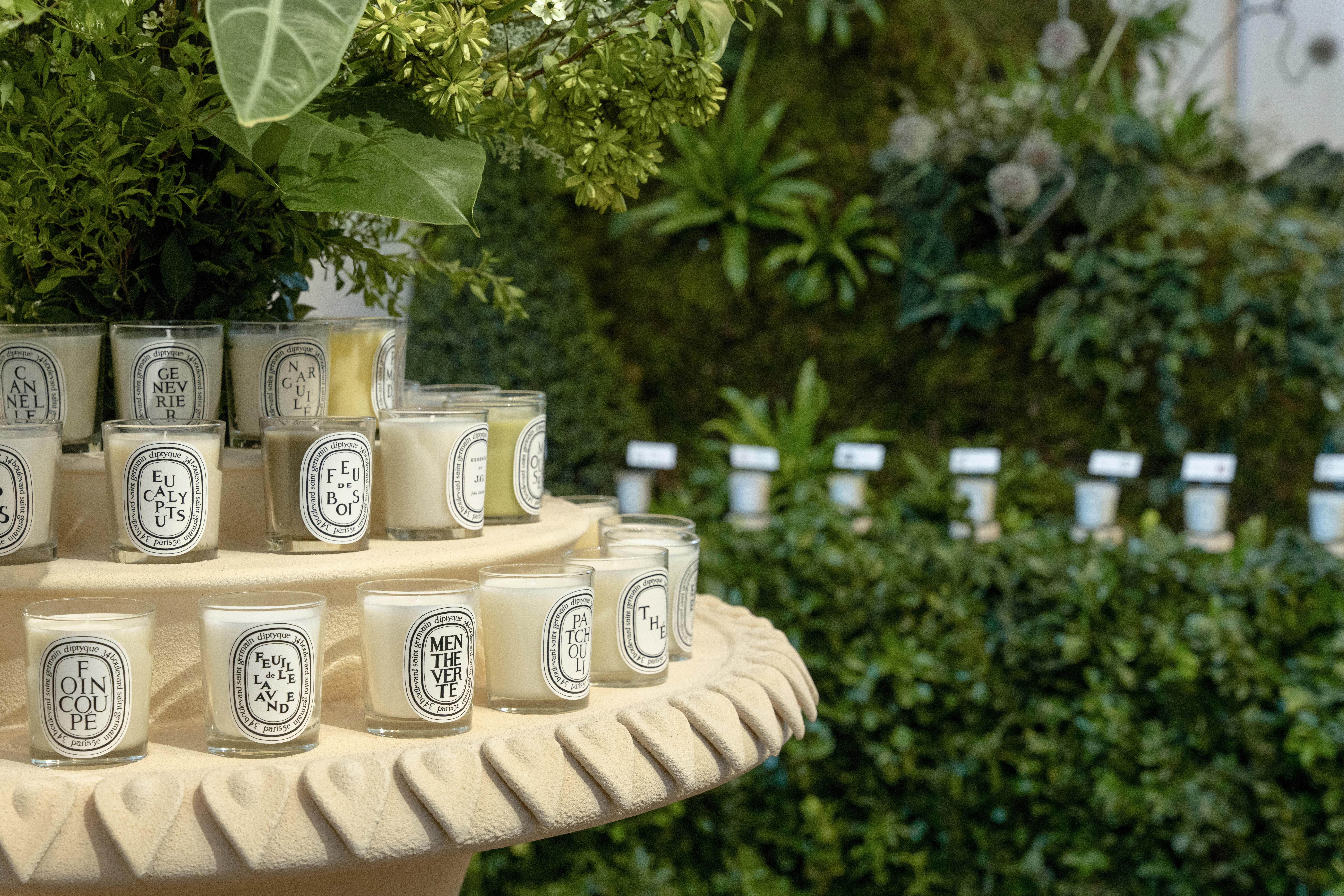 在这段旅程的中心,一座花园悄然铺展——它虽是想象中的场景,却深深植根于品牌的起源。自诞生之初,花园便是Diptyque魂牵梦萦的意象:它不止于美,更是灵感、情绪与记忆悄然生长的土壤。在这片空间中,香氛植物图集从纸本跃入现实:49款经典香氛蜡烛依次陈列,每一款皆是对大自然丰饶植被的礼赞——花朵的馥郁、树皮的粗粝、香料的炽烈亦或是香草的清冽。它们共同织就了一幅以蜡为线、以自然世界为蓝本的嗅觉织锦,勾勒出Diptyque独一无二的香气宇宙。漫步此间,犹如在翻阅一部气味诗集。每一颗香氛蜡烛不只是一段香气,更是一幕情境、一段往事、一种可被感知的情绪:壁炉中的噼啪声响、野草的清苦芬芳、雨后泥土的湿润气息……这座花园,同样是对Diptyque匠艺精神的致敬——调香与制蜡技艺细腻交融,精准技法与诗意灵感并行。每一款香氛的构成都历经反复严谨的悉心调配,每一重香调的组合都经由艺术直觉与准确计量共同雕琢。在这里,香氛已成为一种语言。而那看不见的烛火,则是这场感官漫游中的默默陪伴的同行者。