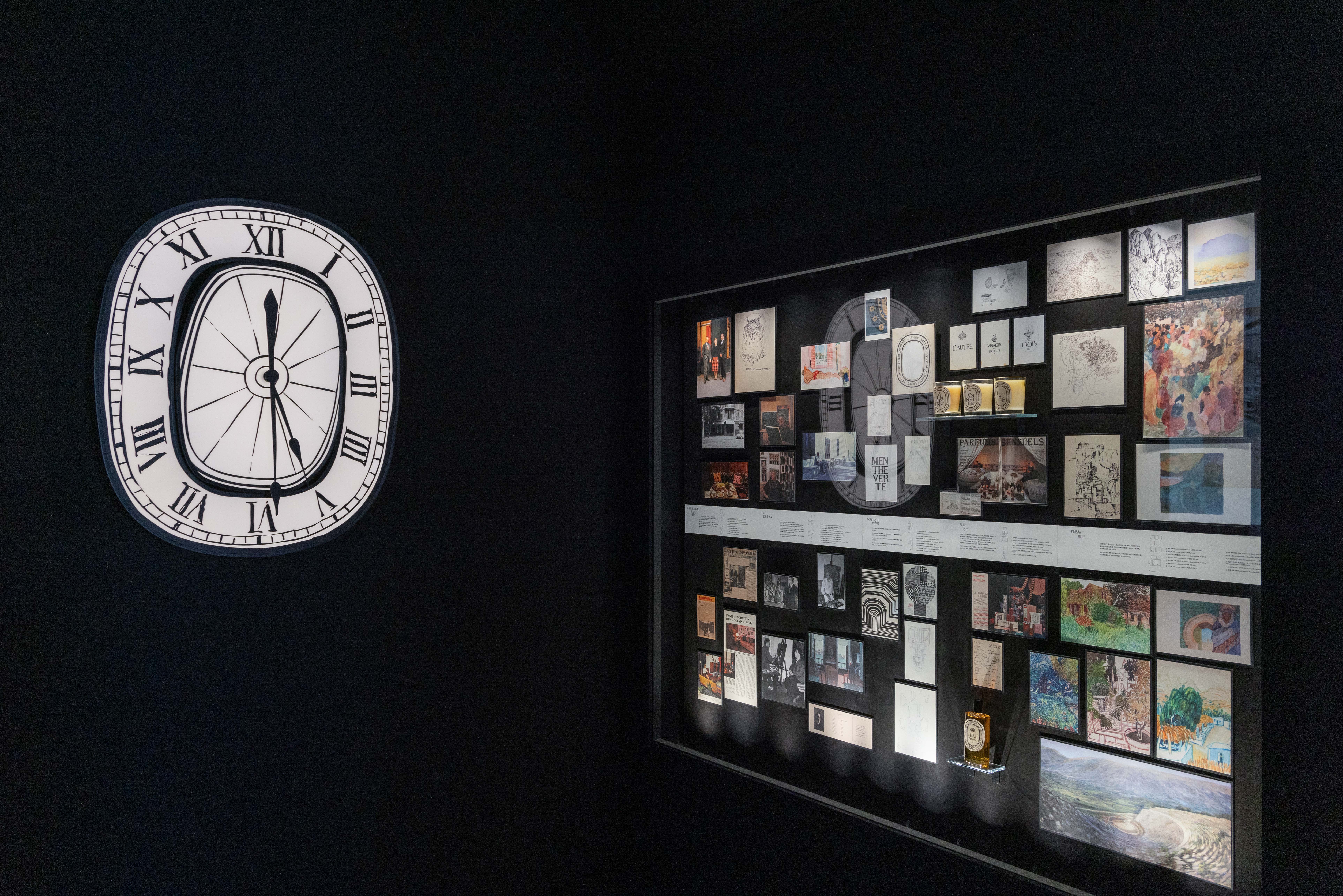 旅程始于1961年。彼时的巴黎左岸,正处于20世纪60年代的文化蓬勃时期——在第五区这个充满活力的拉丁街区,书商、爵士乐俱乐部、青年学生与艺术匠人汇聚一堂,洋溢着自由与创造的气息。正是在这里,三位志趣相投的好友:画家Desmond Knox-Leet、室内设计师Christiane Montadre-Gautrot,和舞台布景设计师Yves Coueslant,于圣日尔曼大道34号共同创立了一间别具一格的精品店。他们将这家店命名为Diptyque,灵感来自他们钟爱的“双联画”艺术形式。这不仅仅是一间店铺,更像是一个自成一体的小世界——包罗万象,充满着惊奇发现。店内陈列着棱角分明的图腾、被重塑功能的旧物、旅途中的异域灵光、更有不可错过的香氛蜡烛与香水,这些珍品共同构成一幅灵感拼图,邀请来访者肆意浏览、触碰、嗅闻、并尽情感受。这处空间,是对世界诗意之美的礼赞。香氛档案室重现了品牌启程的场景。它并非对过往时光的简单回溯,而是面向未来旅程的崭新出发。展厅中陈列着珍贵的原始档案、手稿与草图,还原了品牌的诞生轨迹、创作故事与创始人们的艺术灵光。同时,一段朦胧的影像投影,将品牌早期的记忆片段轻轻唤醒,灵动重现。展厅中央,一座始终追随巴黎时间的时钟,维系着Diptyque与其灵感原址之间不曾中断的情绪联结。
