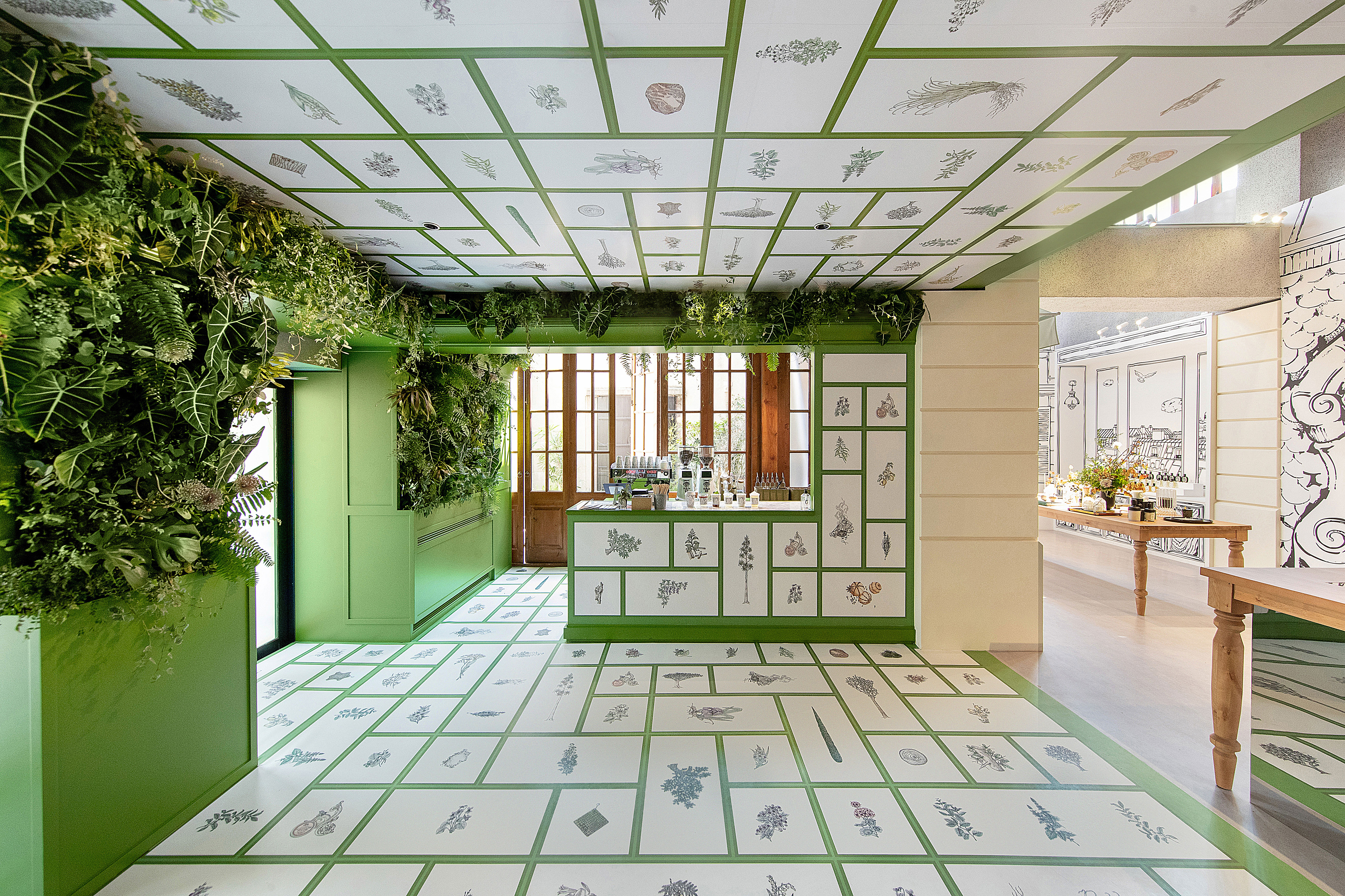 在Diptyque,香气的探索始于眼睛与画笔的合谋,这是品牌的独特印记。插画、线条与梦境般的意象,率先勾勒出嗅觉的路径。绘画,作为品牌最初的语言,先于每一缕香气存在,它描摹记忆的边界、叙事的起点,或一片未曾抵达的远方。这座工坊以全景式的视觉画面,唤起来自各处风土的嗅觉记忆:橄榄树与石崖交汇的地中海、湿热的亚洲幻境、水苑环绕的意大利花园……所有真实或虚构的风景,皆成香气的注脚。空间中静置的香氛瓶樽,缓缓释出Diptyque香氛的芬芳痕迹。每一款香气,均对应一幅独属的嗅觉风景,如同一扇通往远方感官世界的门。从无花果到杜桑,从肌肤之花至影中之水,每支香水皆是艺术家与调香师跨越领域的对话结晶,邀你步入一场感官之旅。作为旅程的终章,访客可以挑选一枚全景试香卡,以香氛绘境,将这微缩世界折入衣袋,作为这段旅途的嗅觉纪念。