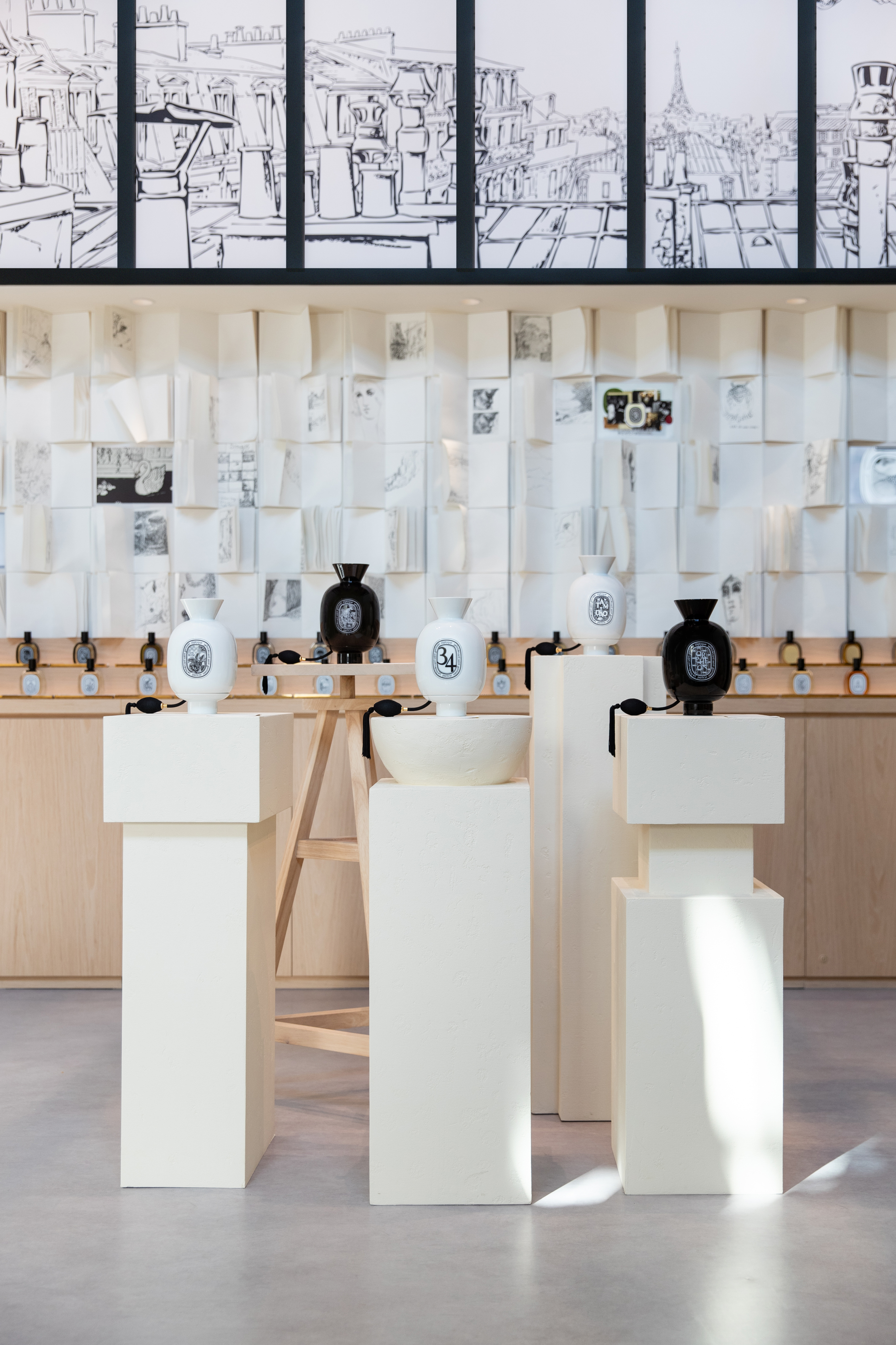 此处的灵感,汲取自巴黎的那些传奇花园——曾是Diptyque创始人昔日钟爱的漫步之地,于绿意中寻觅宁静与创作的火花。这片空间重现了巴黎城中隐秘绿洲的经久魅力:树影摇曳,喷泉流淌,诗意时刻邀人驻足小憩。在这里,你可轻啜一杯咖啡,闲览一页品牌报纸,信手书写片刻思绪,或只是单纯地放空自己。每一处诗意细节皆邀你停下脚步、放慢感受、沉入遐想。这是一个暂停时间的瞬间,节奏在此放缓。Diptyque的“巴黎”,成为一个可以呼吸、铭记与停驻的静谧时空。