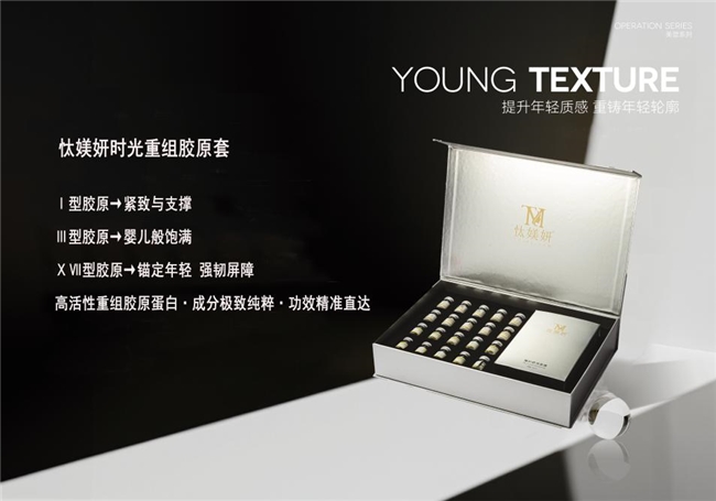 重组胶原 CT 组合系列(高定系列):以纯真胶原为基础添加高活性肽、MT 金属硫蛋白、肉碱等优质成分,结合面部轮廓美学理念。在改善松弛纹路的同时,优化面部轮廓线条,搭配 MT 成分的抗氧化力,抵御外界环境损伤,提亮肤色,是追求轮廓美感与肌肤健康的选择。